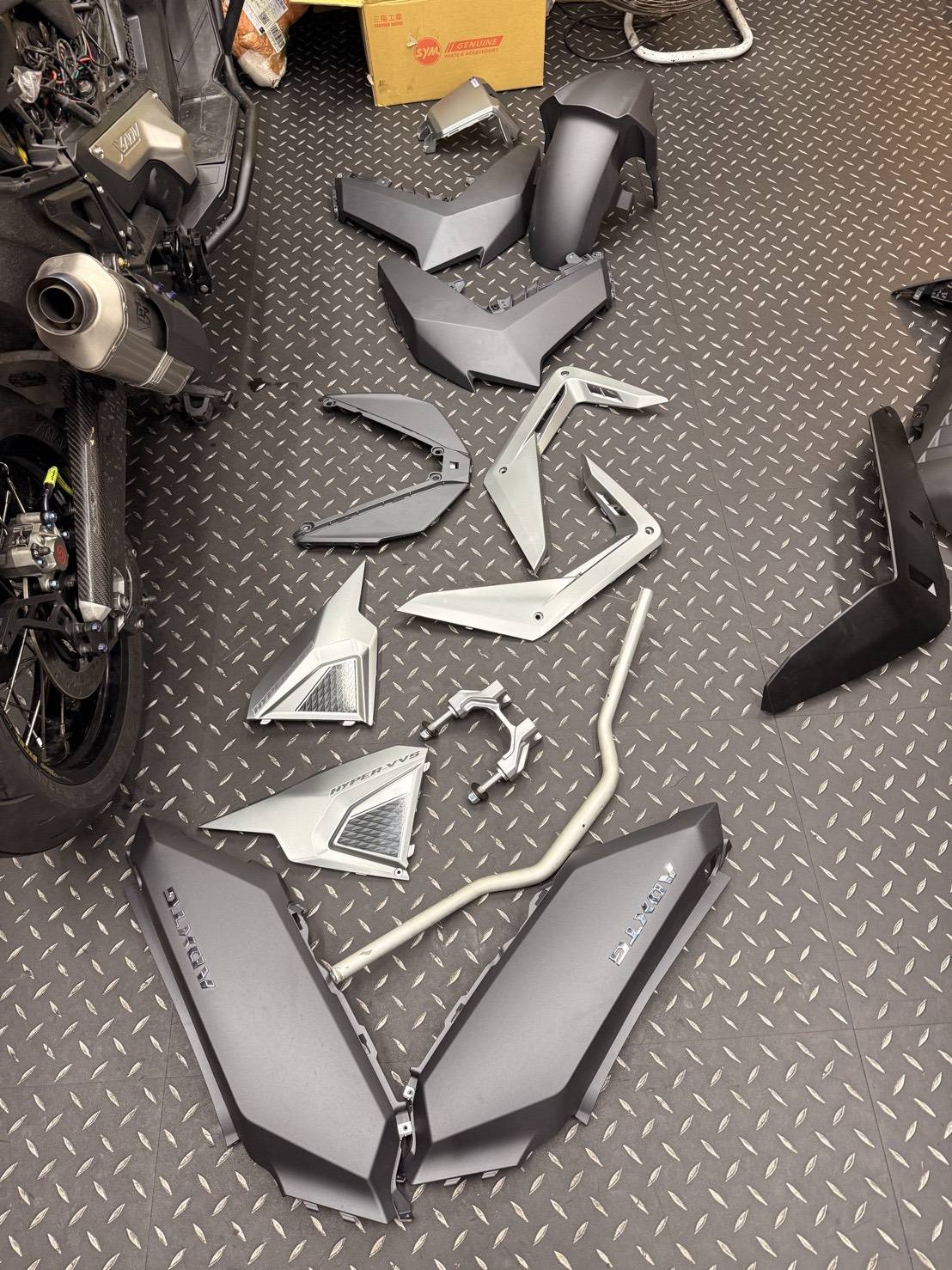 SYM ADX-TG 400 局部烤漆(5塊殼) 9500 前土除烤漆 1800 車手把烤漆 3500 左右側蓋烤漆 1800 中心蓋(含鑰匙鎖頭外蓋)烤漆 1000 側邊飛鏢連同側蓋烤漆 2500 輪圈烤漆 8000 前齒蓋烤漆 1800 後叉(搖臂)烤漆10000