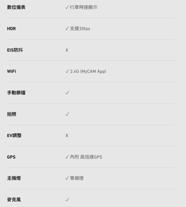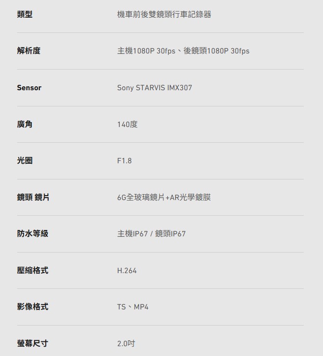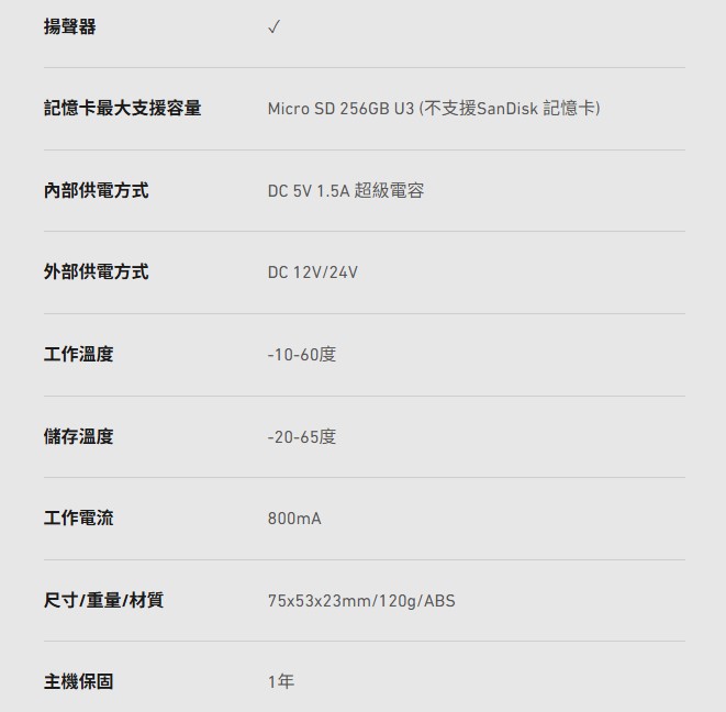 · HDR夜視等級高畫質錄影· 主機1080P 30fps、後鏡頭1080P 30fps